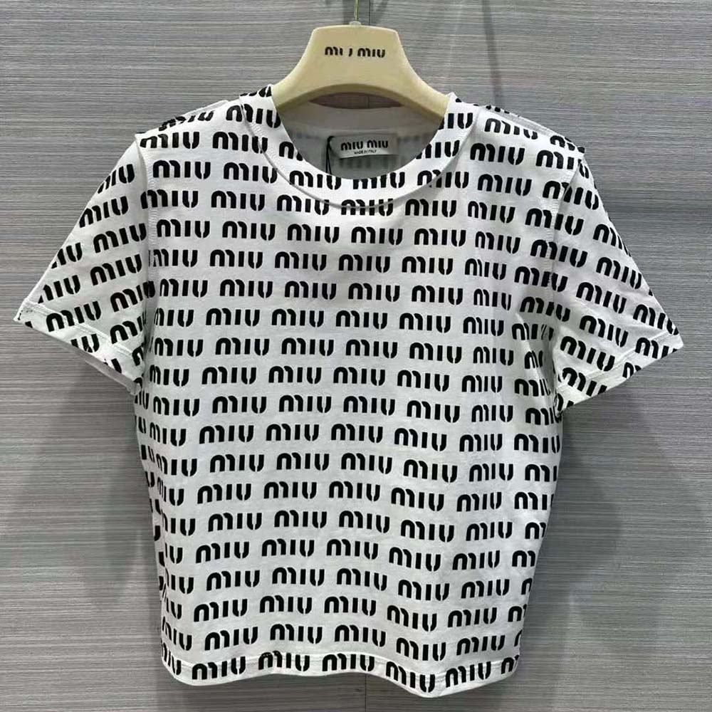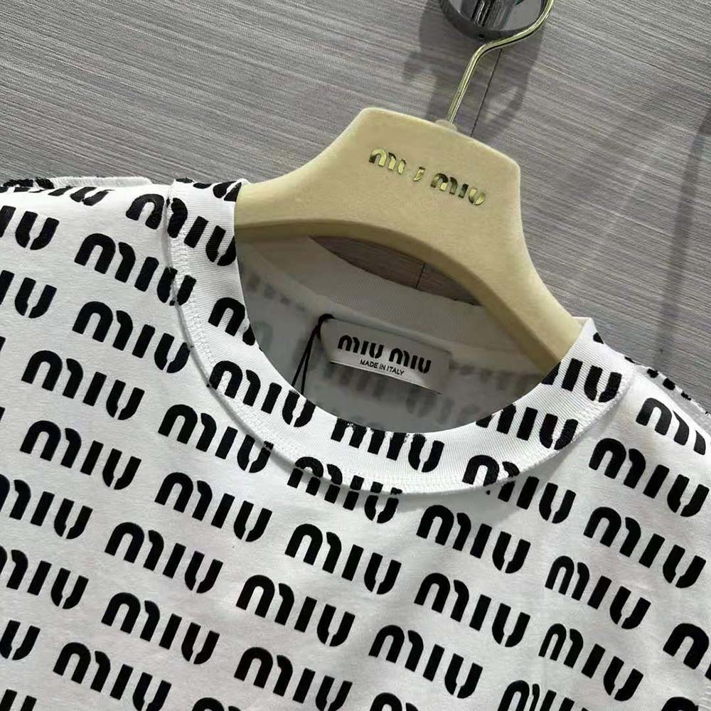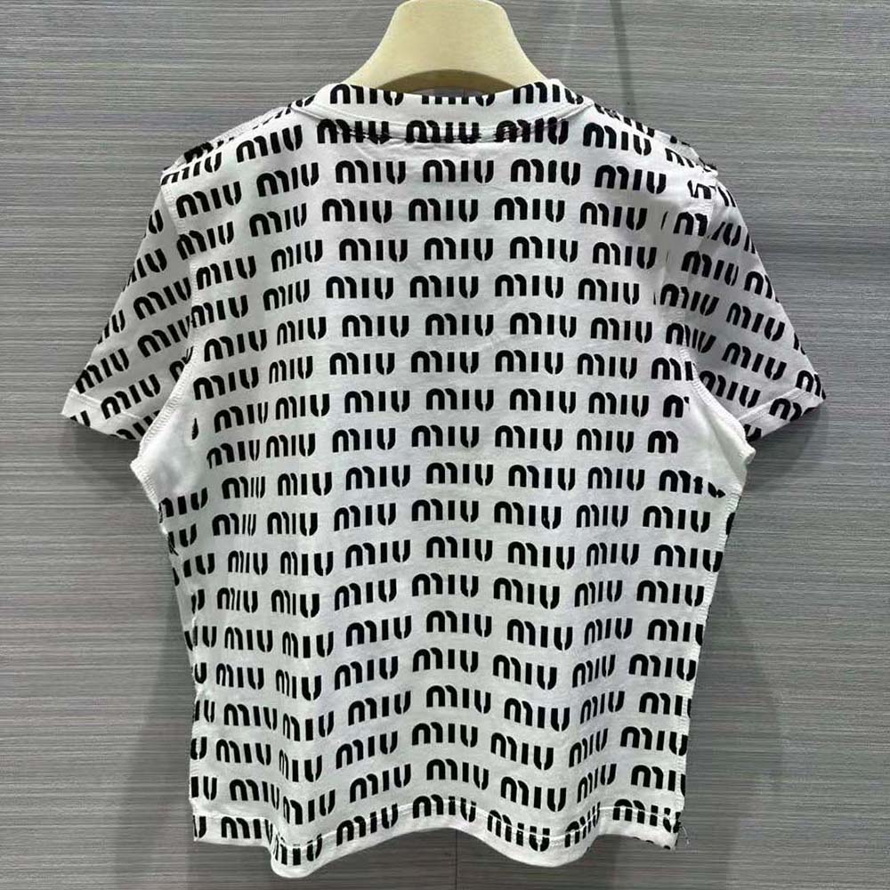 Be the first to review “Miu Miu Women Print Cotton T-shirt with Print Logo”