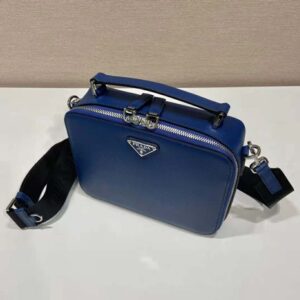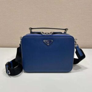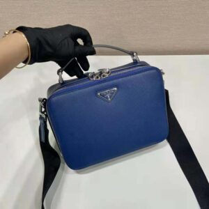 - The Prada Brique bag in Saffiano leather stands out for its sleek lines. Saffiano leather,