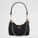 - This shoulder bag made of Re-Nylon and brushed leather combines a contemporary design