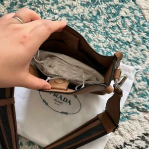 - The accessory is completed by the detachable woven tape shoulder strap embroidered
