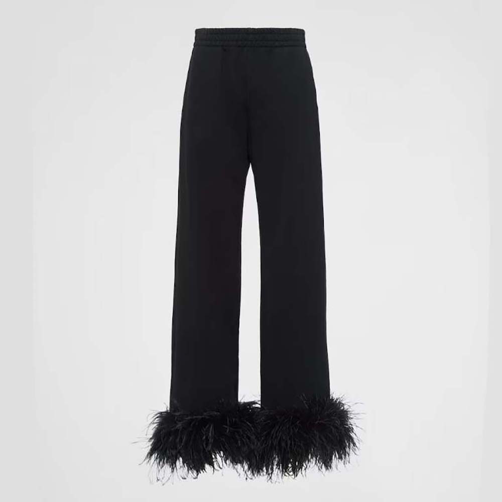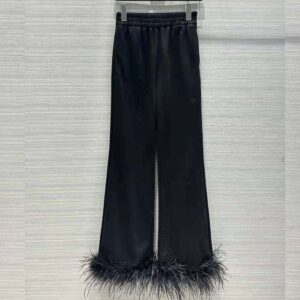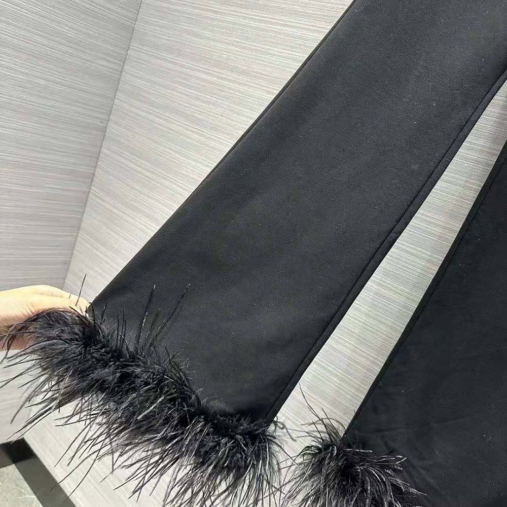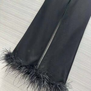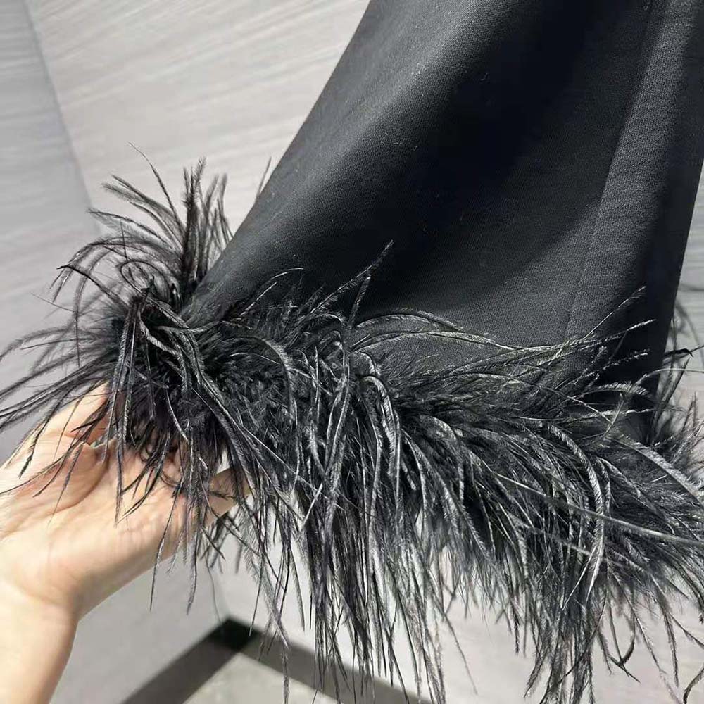 - Detachable feather trim with buttons on the hem