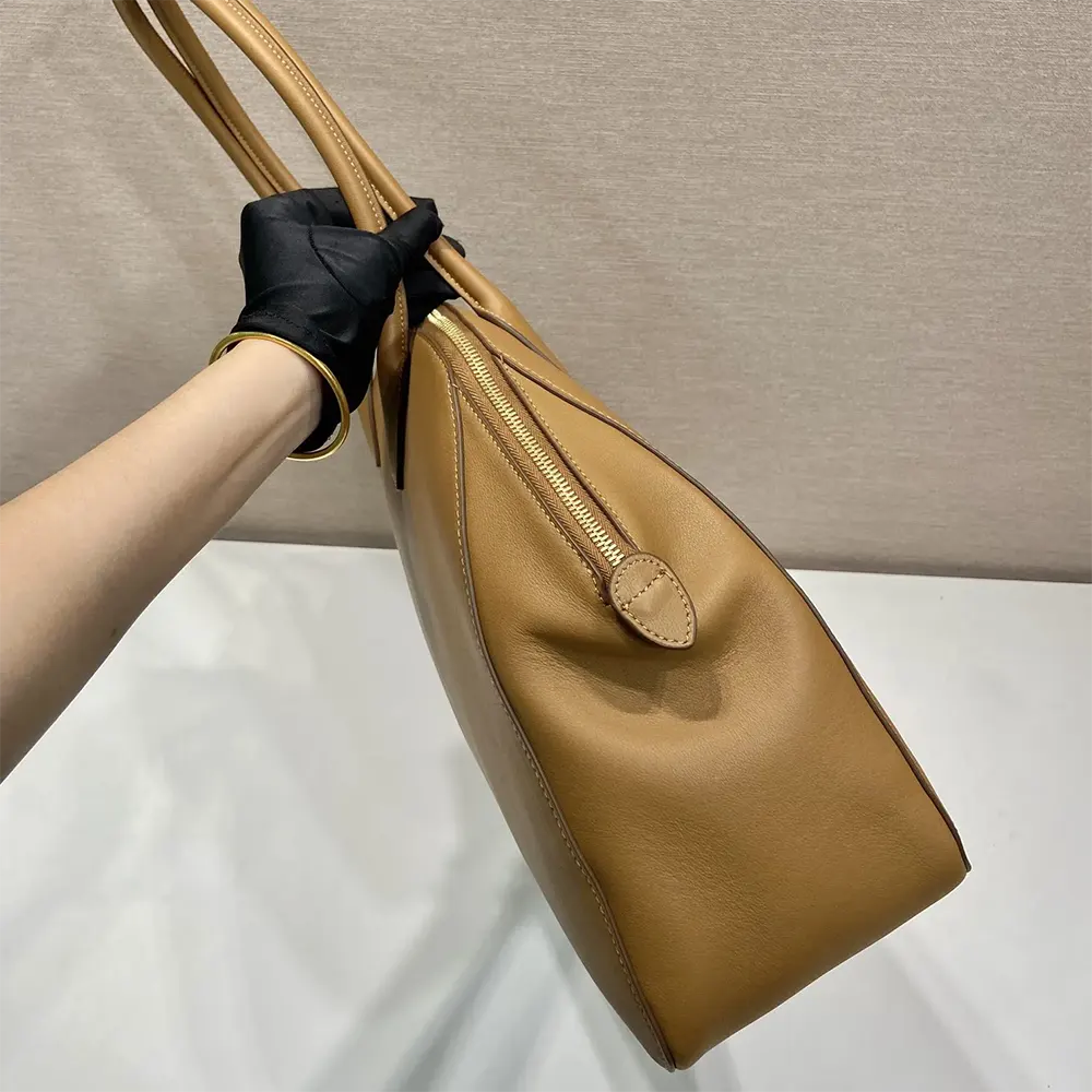 - The roomy design with three internal pockets is defined by rounded lines and refined details,