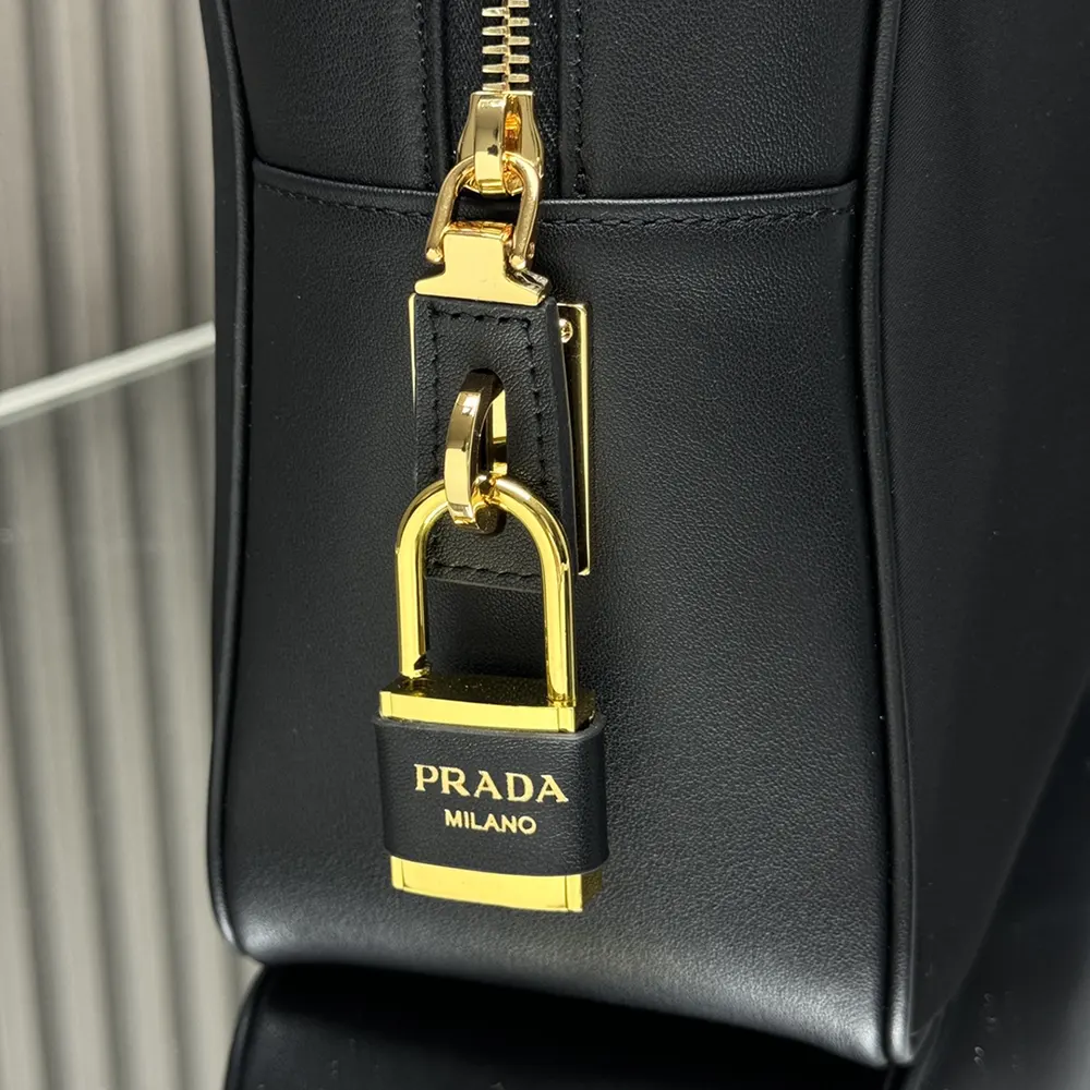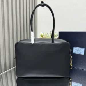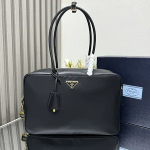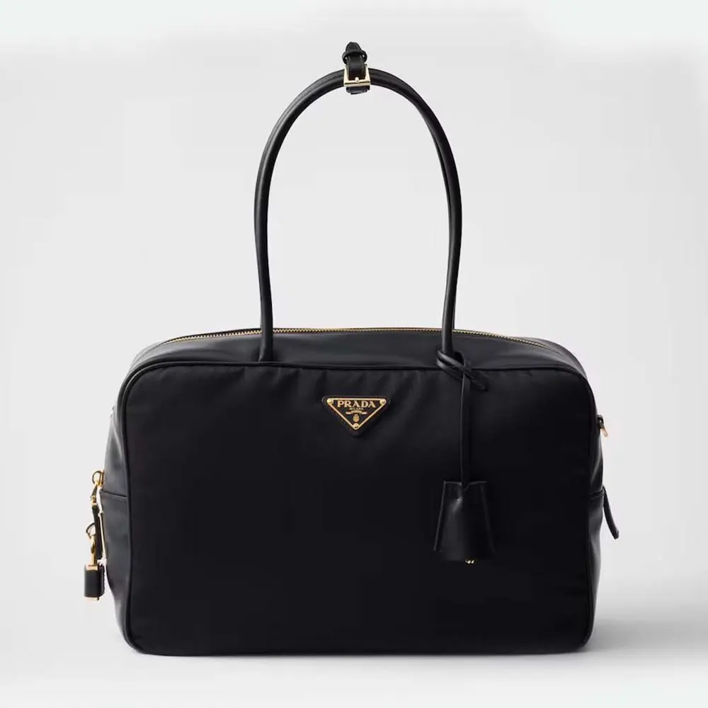 - This structured top-handle bag, crafted from Re-Nylon and leather,
