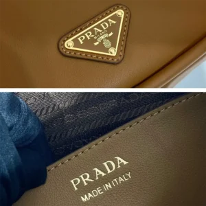 - The accessory, an expression of exceptional artisanal know-how, is decorated with the enameled metal triangle logo.