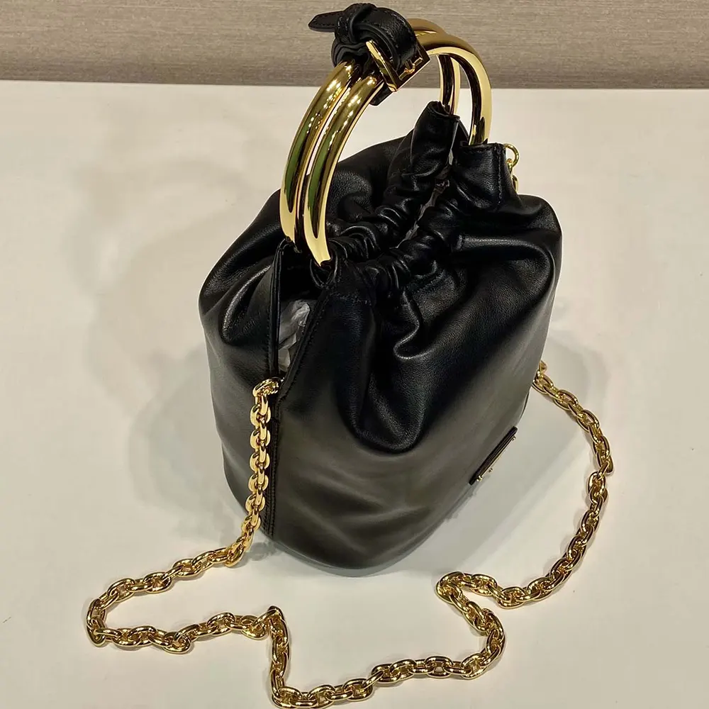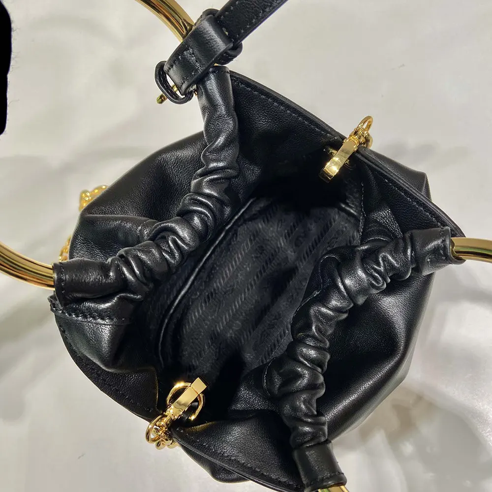 - The sophisticated design of this mini bag stands out for its bucket silhouette in soft nappa leather,