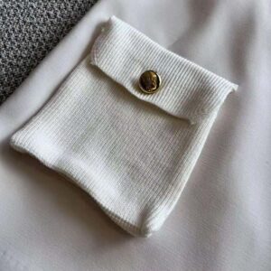 - with a flapped patch pocket with gold button and the leather logo patch,