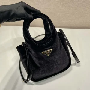 - This velvet mini handbag features soft volumes and sleek lines.