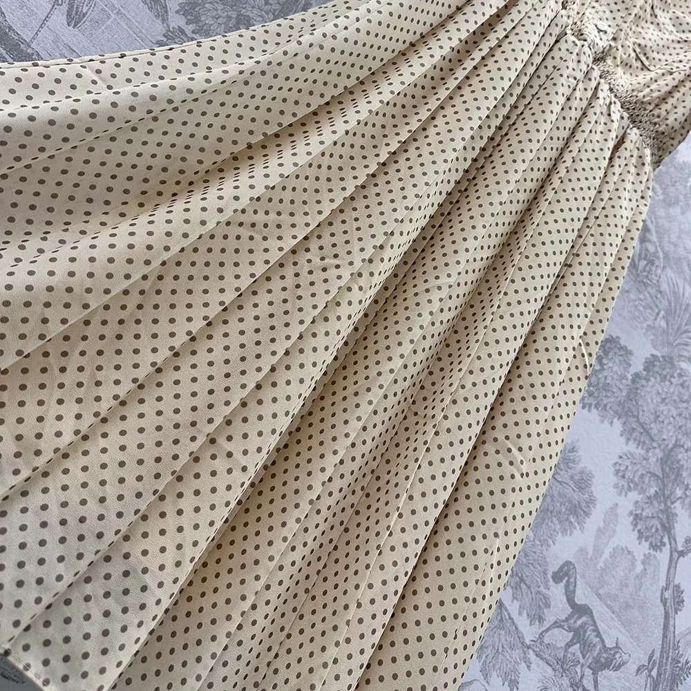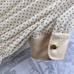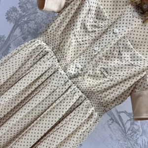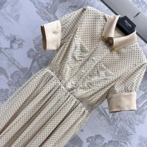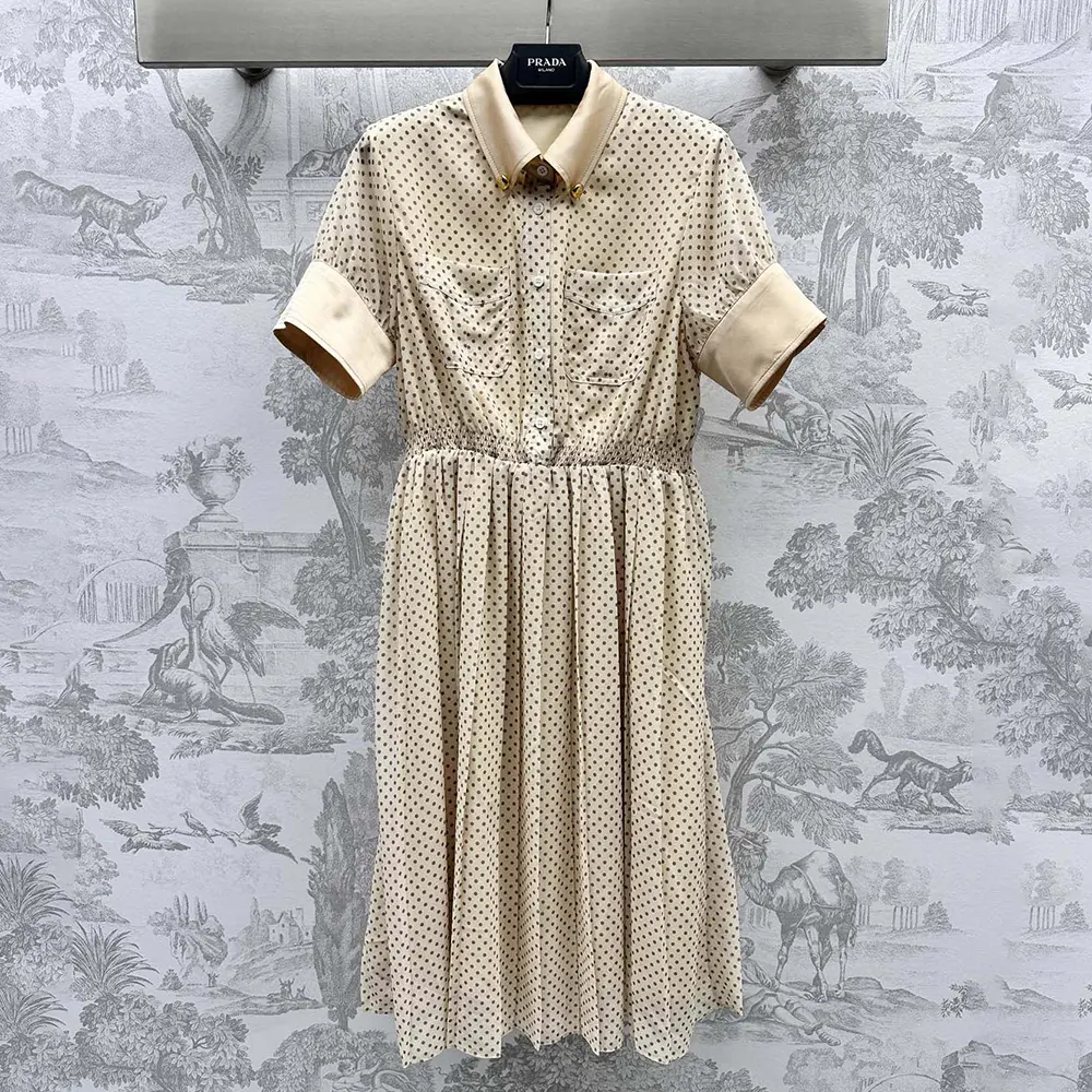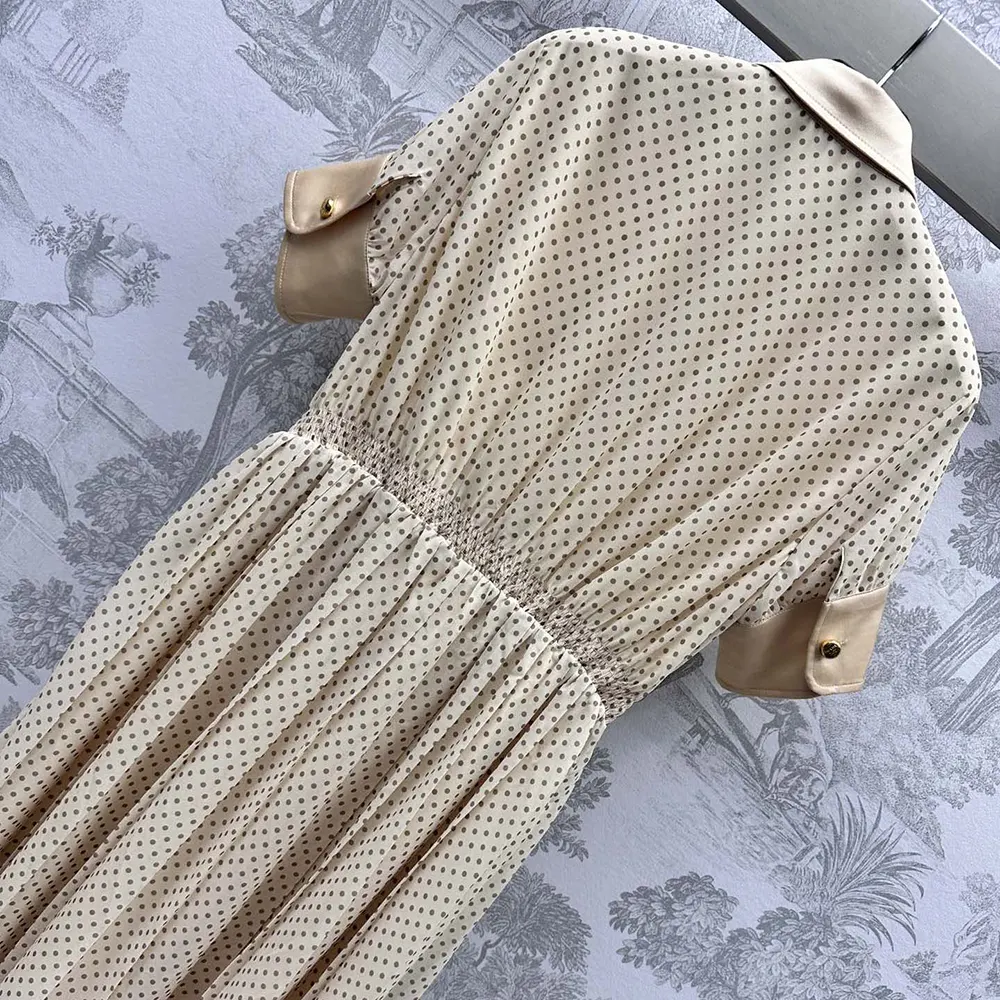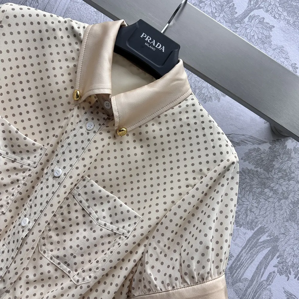 - This sophisticated, feminine shirt dress is characterized by the refined polka-dot print