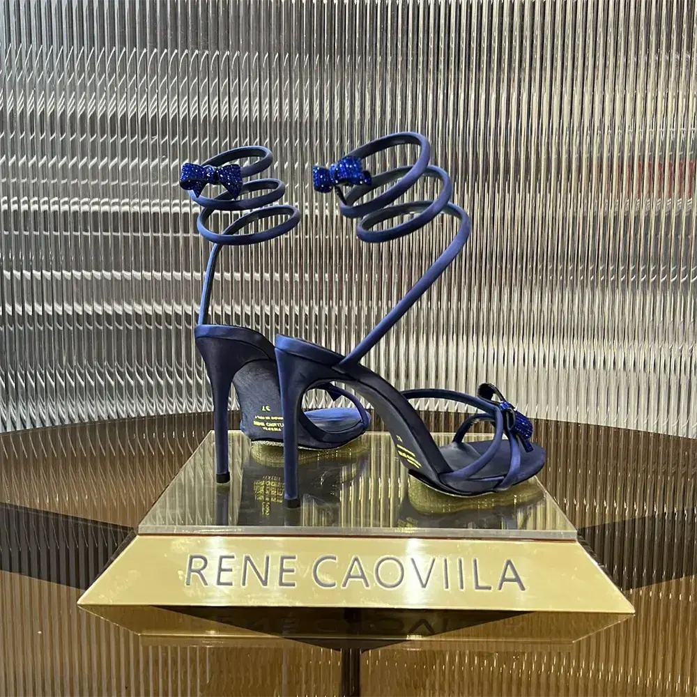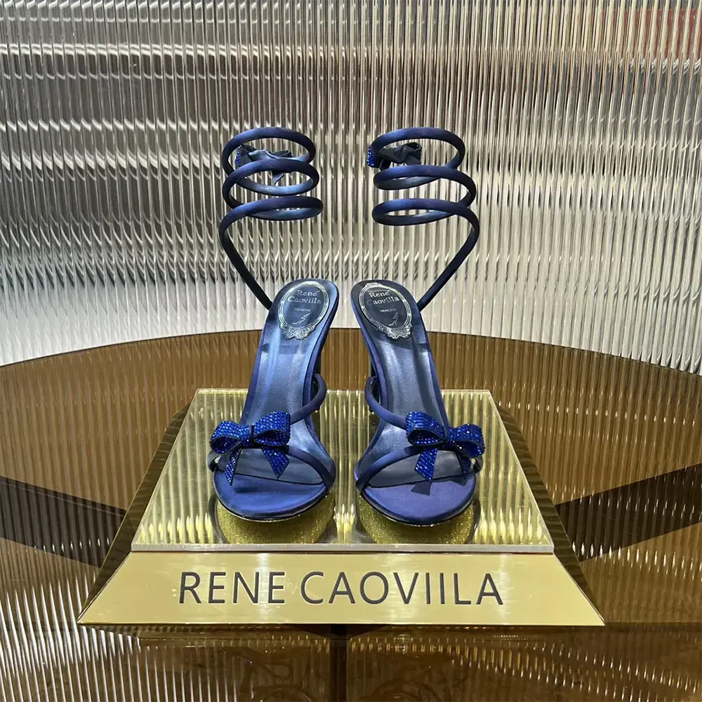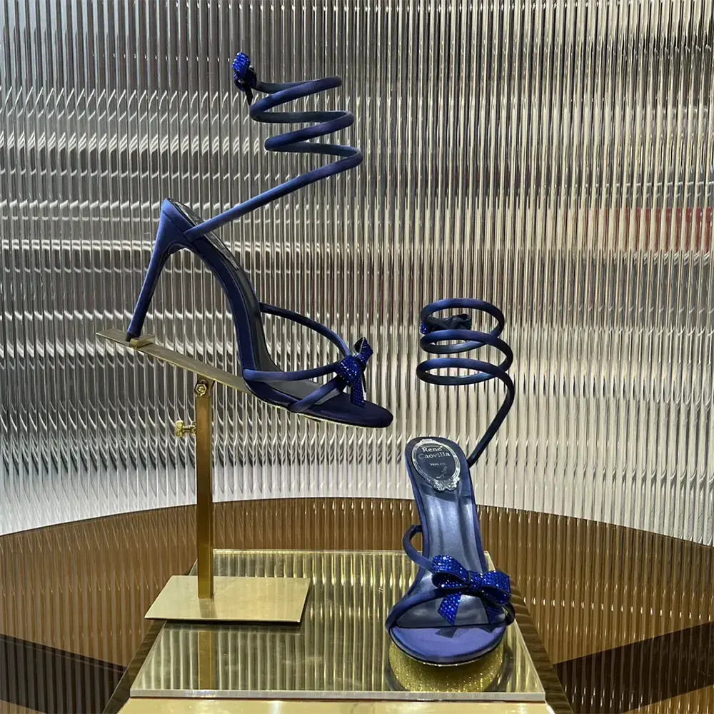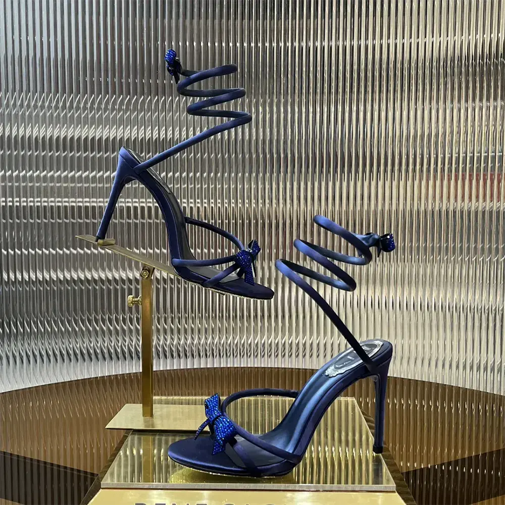 - Embellished with small bows studded with silver crystals applied to the toe and crowning the serpent spiral,