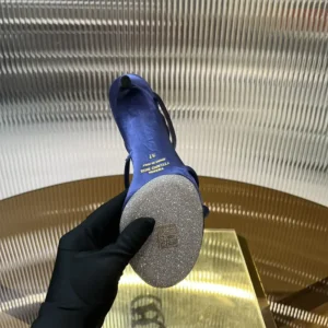 - The Cleo sandal highlights its most romantic and feminine side in this sophisticated midnight blue version.