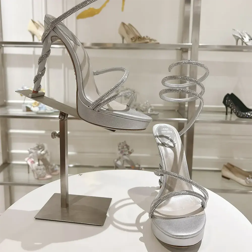 - Sculptural design and shimmering details are the distinctive elements of the Margot sandal.