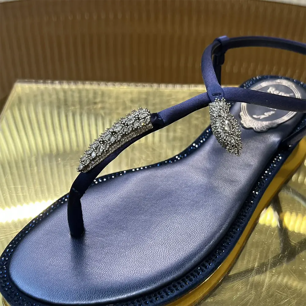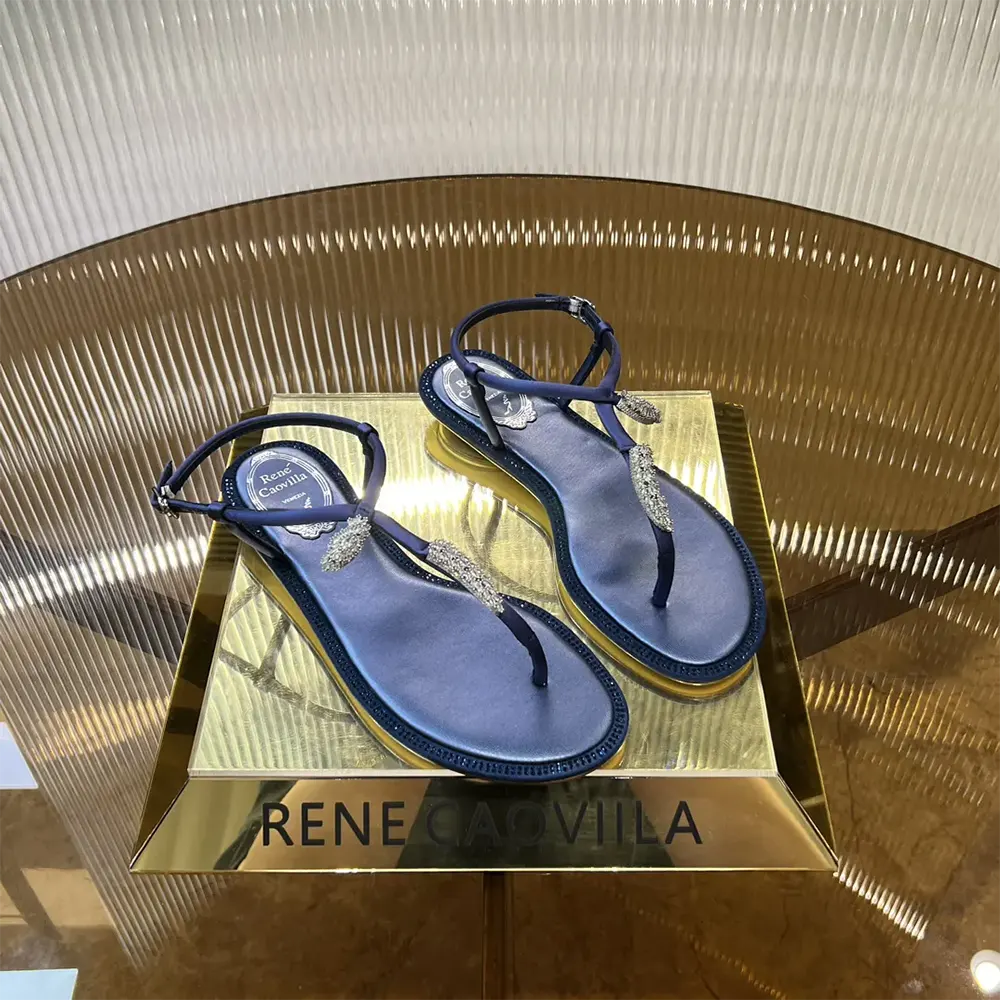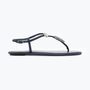 - The eternal elegance of indigo meets the versatility of an essential flat design in the Serpente thong sandal.