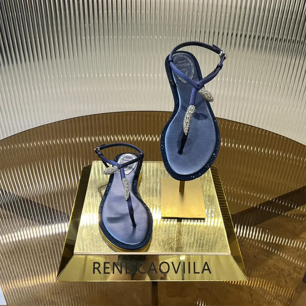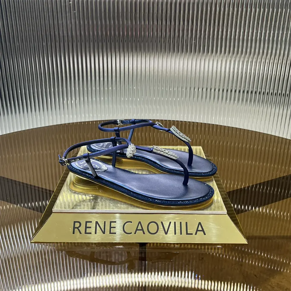 - while the row of tone-on-tone crystals embellishing the profile of the flat winks at the stylistic codes of the maison.