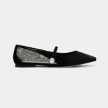 - Patent leather and net fabric upper