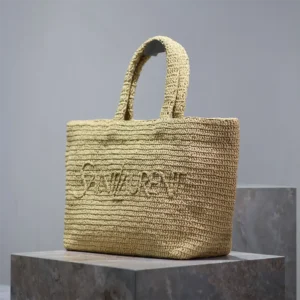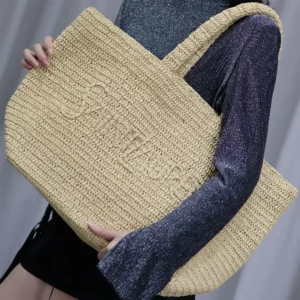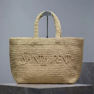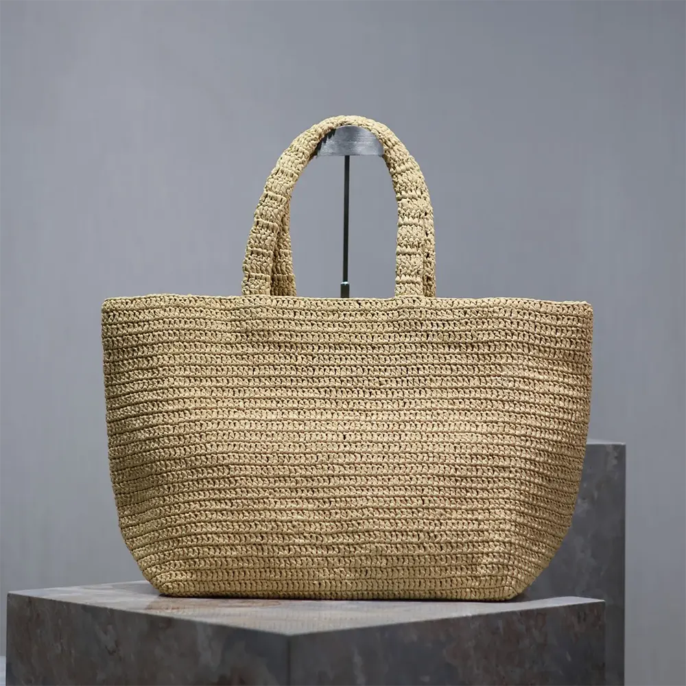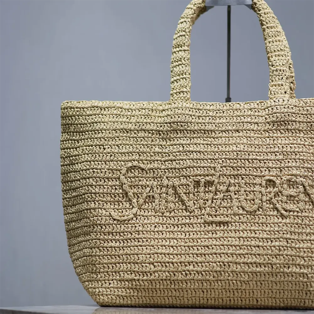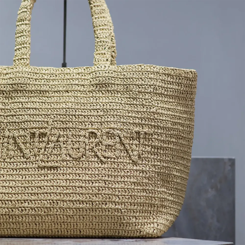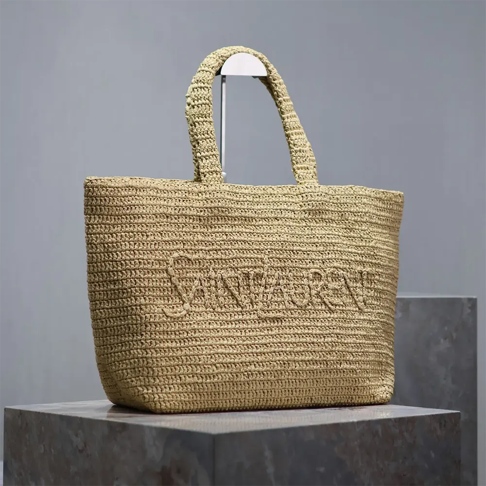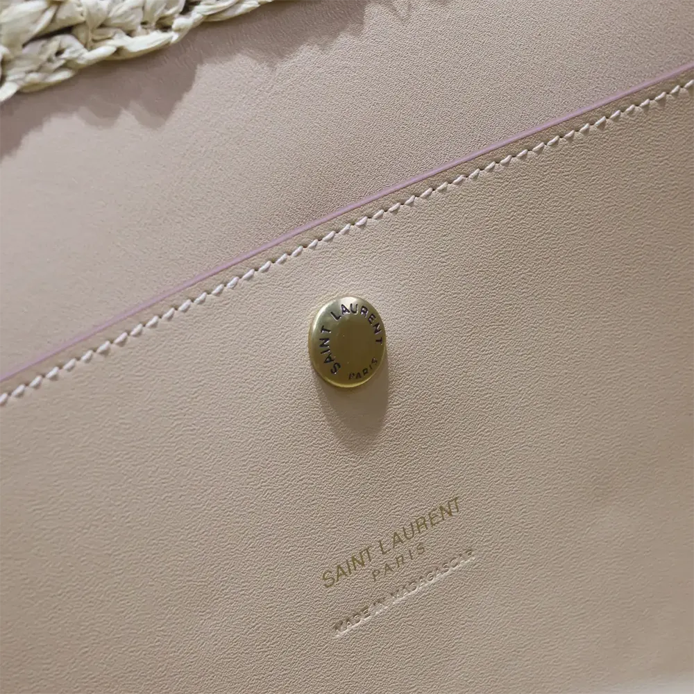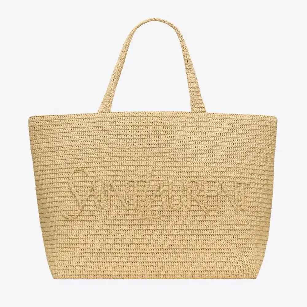 - FEATURING AN EMBROIDERED SAINT LAURENT SIGNATURE IN TONAL RAFFIA.