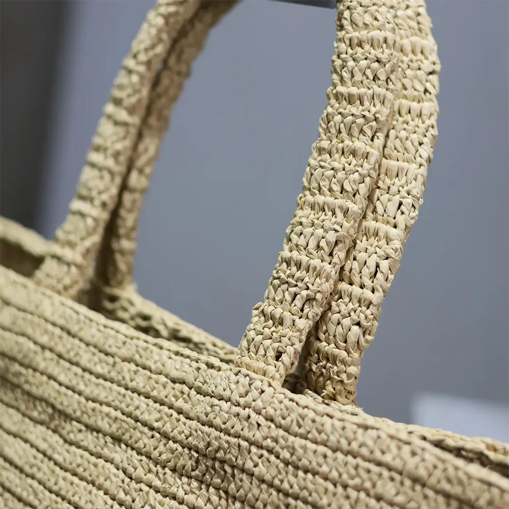 - SPACIOUS TOTE BAG MADE WITH HANDCRAFTED RAFFIA CROCHET,
