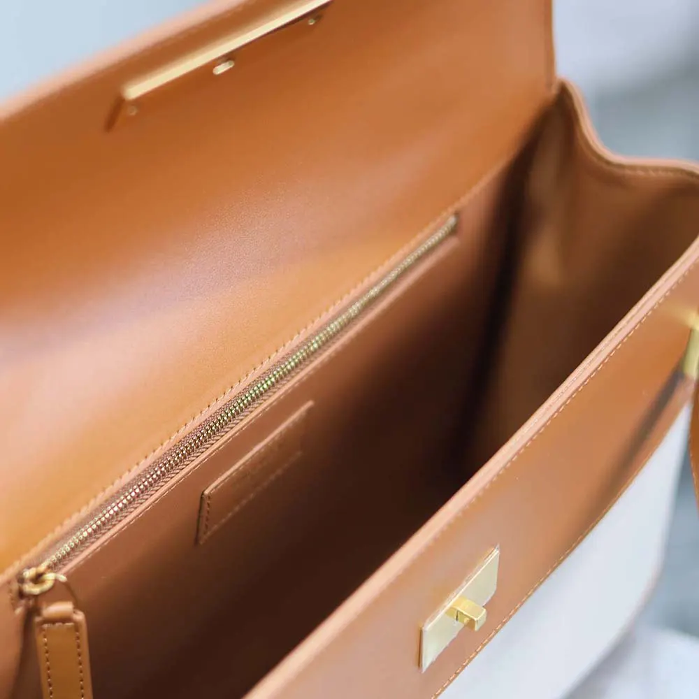 - THIS SOPHISTICATED AND SPACIOUS FLAP BAG IS LINED IN TONAL LEATHER WITH A FLAT POCKET.