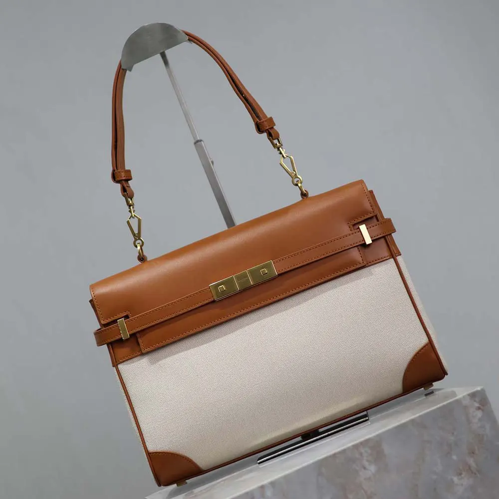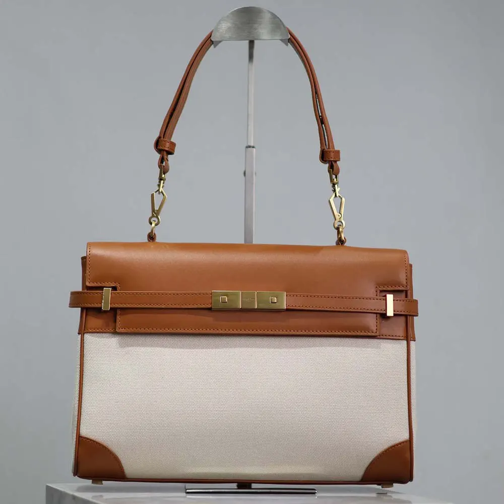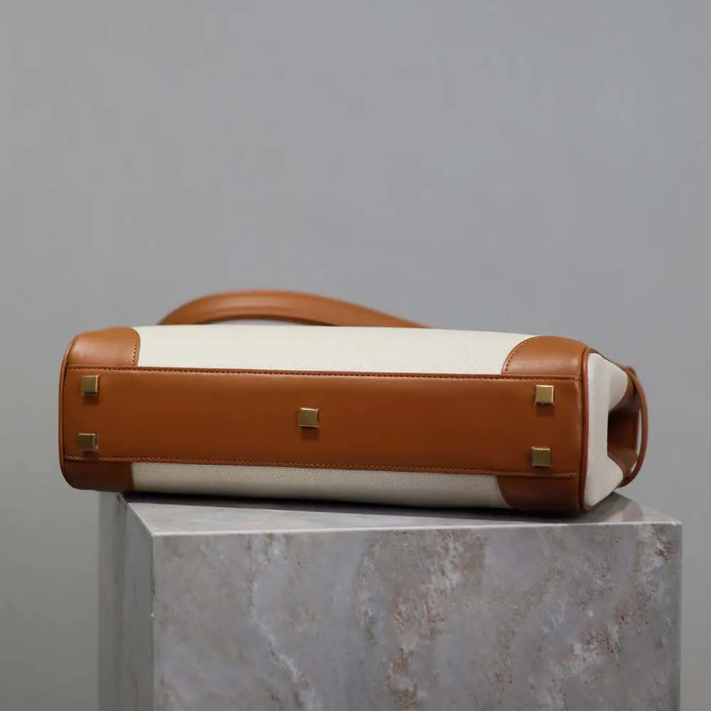 - TOP-HANDLE BAG IN CANVAS AND VEGETABLE-TANNED LEATHER,
