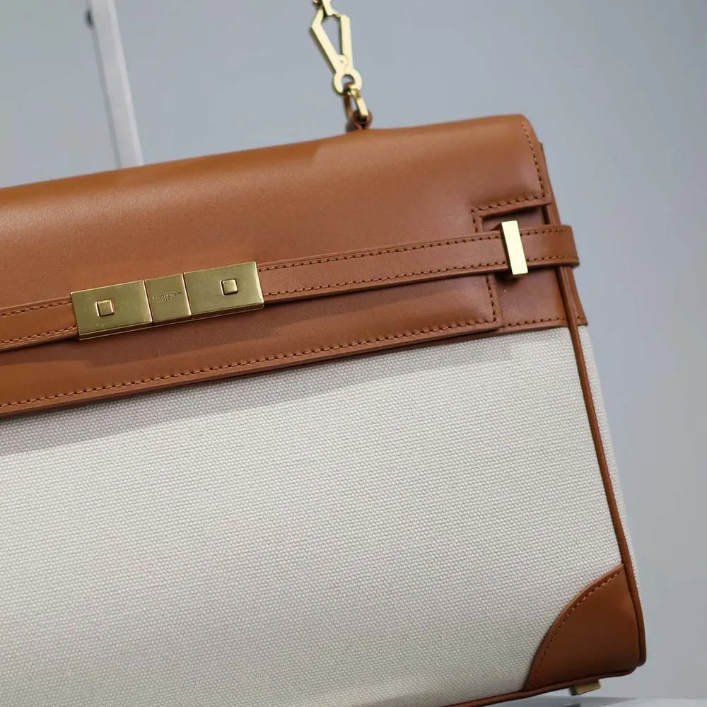 - DECORATED WITH A SAINT LAURENT PARIS ENGRAVED CLASP AND CARABINER HANDLES.