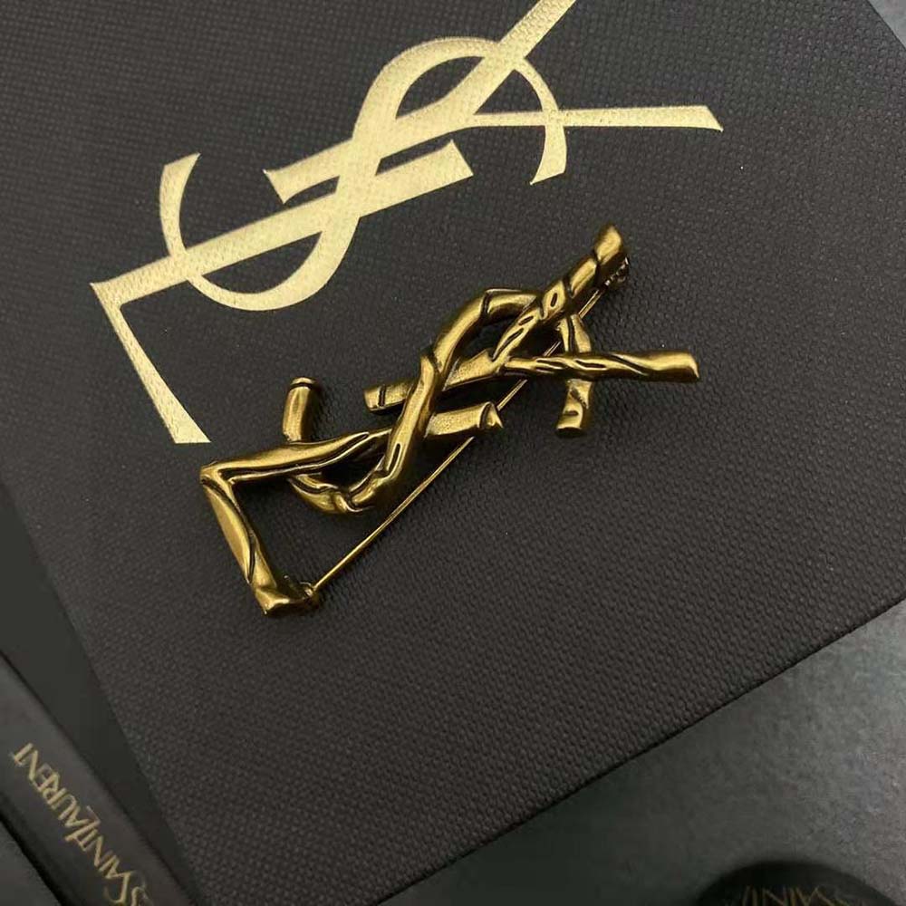 Saint Laurent YSL Women Opyum YSL Crocodile Brooch in Gold Brass