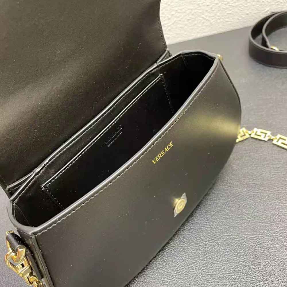 - the Greca Goddess line is characterised by the central Greca chain hardware and detachable chain strap.