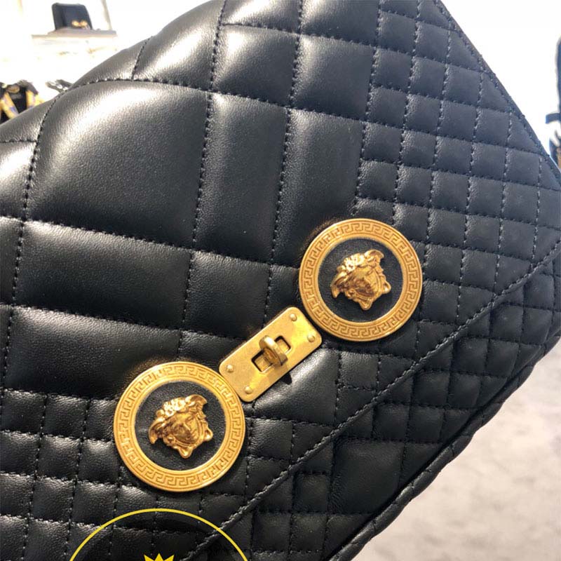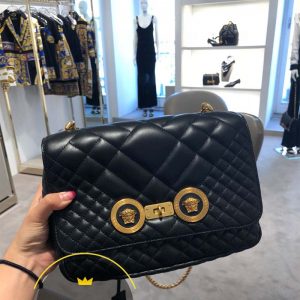 Be the first to review “Versace Women Quilted Icon Shoulder Bag in Nappa Leather-Black”